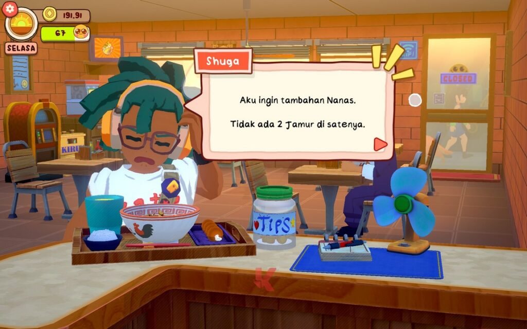 Dunia yang ditawarkan oleh game yang satu ini memang fiksi, tidak ada yang bisa menyangkal hal tersebut. Namun di sisi lain, setidaknya sebagai gamer Indonesia yang hidupnya tidak bisa lepas dari bakso yang notabene jadi comfort food kita. Desain yang ditawarkan Gambir Studio juga bisa jadi pedang bermata dua untuk kelemahan yang tidak signifikan, namun pantas untuk dibicarakann ini. Bahwa ia membuat banyak pelanggan restoran Anda hadir bak “monster”.