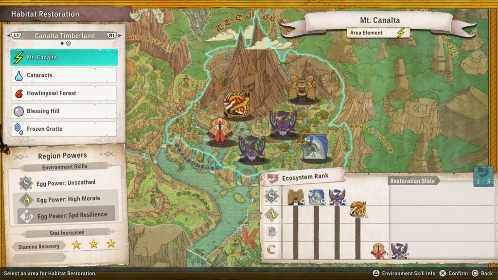 Hal ini karena monster Hunter Stories 3 memperkenalkan mekanik yang disebut sebagai Habitat Restoration. Bahwa alih-alih Anda simpan tanpa banyak peran di library monster Anda, Anda kini bisa melepaskan monster-monster yang ada ke habitat asli mereka masing-masing. Dengan semakin banyak monster sejenis yang Anda lepaskan ke region dimaksud. Ia akan mengalami kenaikan ranking yang nantinya akan mempengaruhi kualitas telur yang bisa Anda dapatkan dari setiap sarang yang ada. Semakin tinggi kualitas telur monster yang Anda dapatkan, semakin potensial pula sang monster yang diretas darinya.